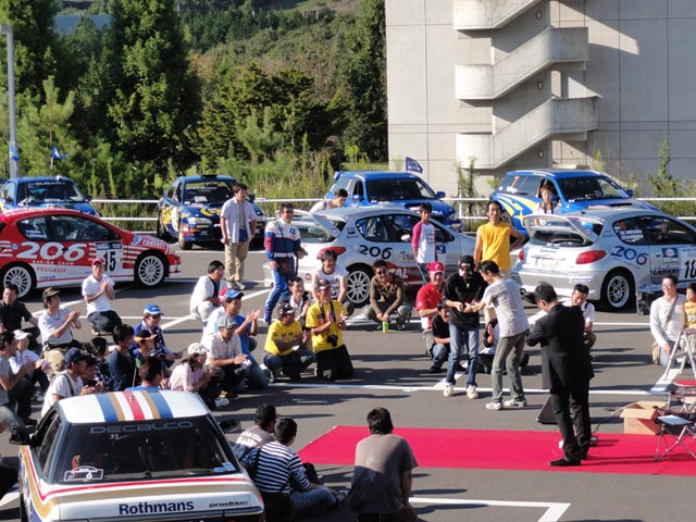 10月11日(体育の日)、ラリー&レプリカミーティングinツインリンクもてぎ、好天に恵まれおかげさまで無事終了いたしました! 午前11時の開会式より2時間のフリータイム。午後1時よりみんなが主役!のポディウムタイム(セレモニアルゴールごっこ)、WRC PLUSさんのトークショー、各社からご提供頂いたたくさんの賞品争奪じゃんけん大会が行われ午後3時に終了となりました。(その後閉園の午後5時まで自由) 目玉となるような有名ドライバーのゲストやワークスマシンもなく、これで満足して頂けるのか不安でしたが、皆さんの声やブログを拝見すると「とても楽しかった!」という感想が非常に多く、安堵すると共に苦労して企画・開催した甲斐があったと大変嬉しく思います。 |
