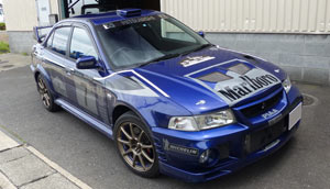 本来はエボ3時代の白ベースのカラーリング。当店で2001年にエボ7で施工したものと同様のカラーリングです。