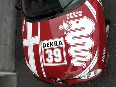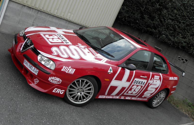 アルファ155のDTM仕様のマーキングを156に。アルファのシンボルデザインはボンネットとサイドとで違うんですね。