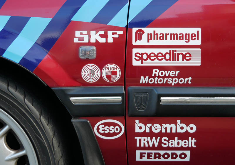 | シンプルなマーキングですがドアハンドル部分の文字やBFGoodrich白ベースをまっすぐなラインに見えるようにラインを設定したりカットする必要があります。 フロントバンパーコーナー部にはウオッシャーノズルのフタもありますし、簡単にはいきません。Aピラー内側のガーニッシュを赤フィルムでボディ色化しております。ルーフの白は3Mセルフクリーニングフィルムを4分割しダブルシェブロン部分を残して貼っています。T○TALロゴは正規ロゴとは微妙に違いがあり、独自の解釈がなされているようです。参考製作費約18万5千円(税別)(2009年時) |